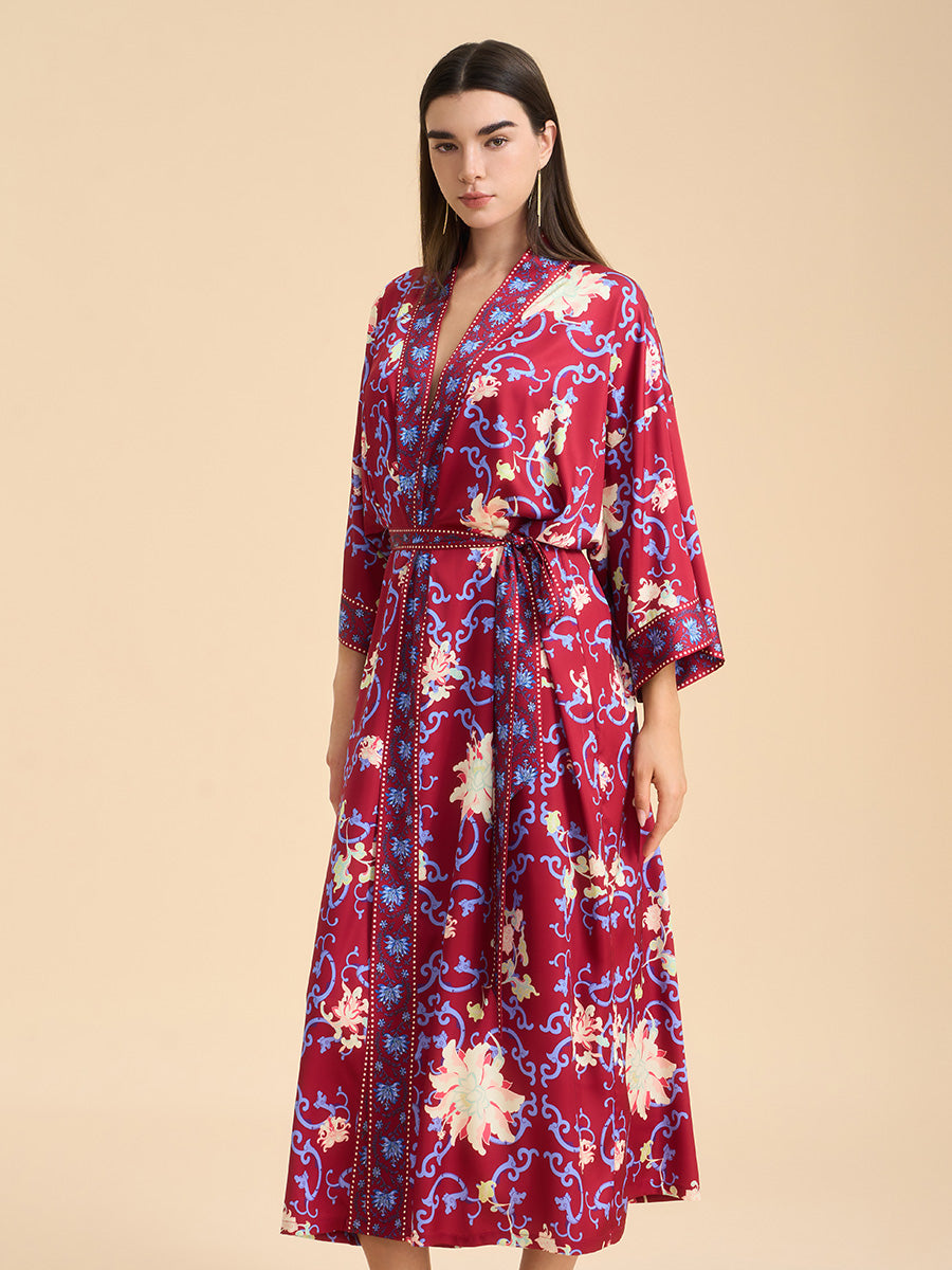Ancient Landscape Satin Kimono Robe